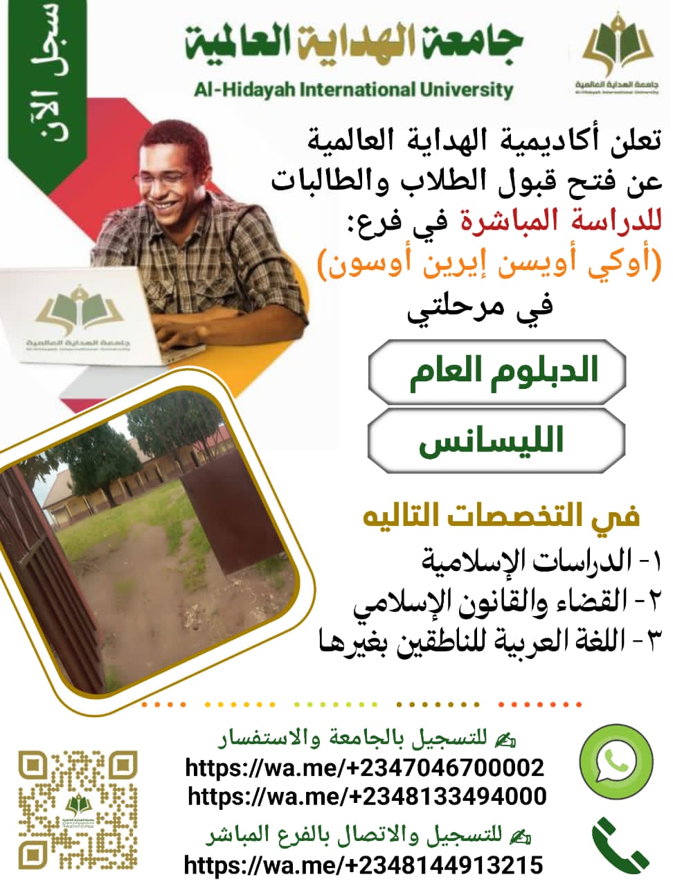 مرحلة الدبلوم العام والليسانس فقط و رسومها 50الف نيرة نيجيرية للترم الواحد.