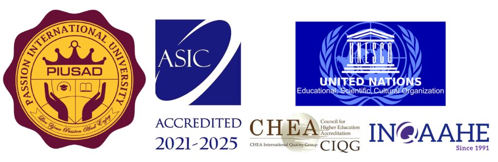 3-الاعتماد الأمريكي والبريطاني من جامعة باشن العالمية جامعة PASSION INTERNATIONAL وهي مسجلة رسميا في وزارة الخارجية الأمريكية ومعترف بها من اليونسكو: في سبتمبر 2022 ، حصلت ASIC (التي تم اعتماد PIUSAD منها) على العضوية الكاملة في الشبكة الدولية لوكالات ضمان الجودة في التعليم العالي (INQAAHE) التي تأسست عام 1991 ، وهي شريك قديم ونشط لـ اليونسكو الأمم المتحدة في وضع معايير التعليم العالي على مستوى العالم ، والإشراف على وزارات التعليم العالي ومؤسسات التعليم العالي ، ومنح الاعتمادات على أساس تلبية المعايير الدولية. فبناء على الاتفاقية الموقعة مع جامعة باشن يمكن للطالب الحصول على شهادته منها بعد استكمال مستلزمات التخرج وتكون موثقة من الخارجية الأمريكية-كولورادو أو واشنطن دي سي. ثم من وزارة خارجية بلد الطالب ثم سفارته بعد دفع مستحقاتهم (رابط الاعتماد)